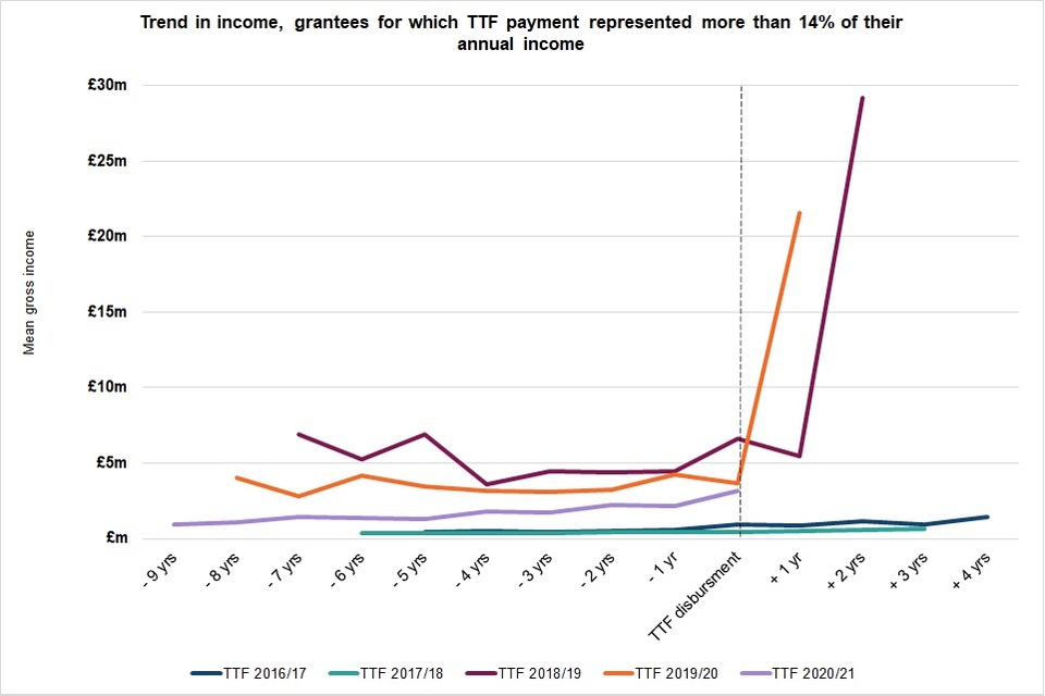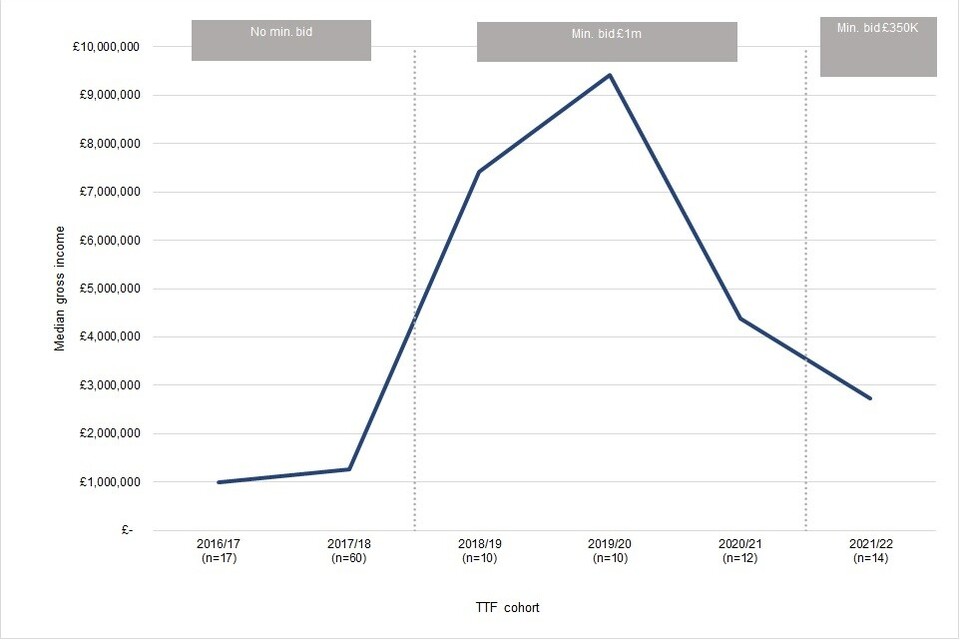 Overall, almost 75% of TTF funding went to the 31% of successful applications with budgets of over £1 million.