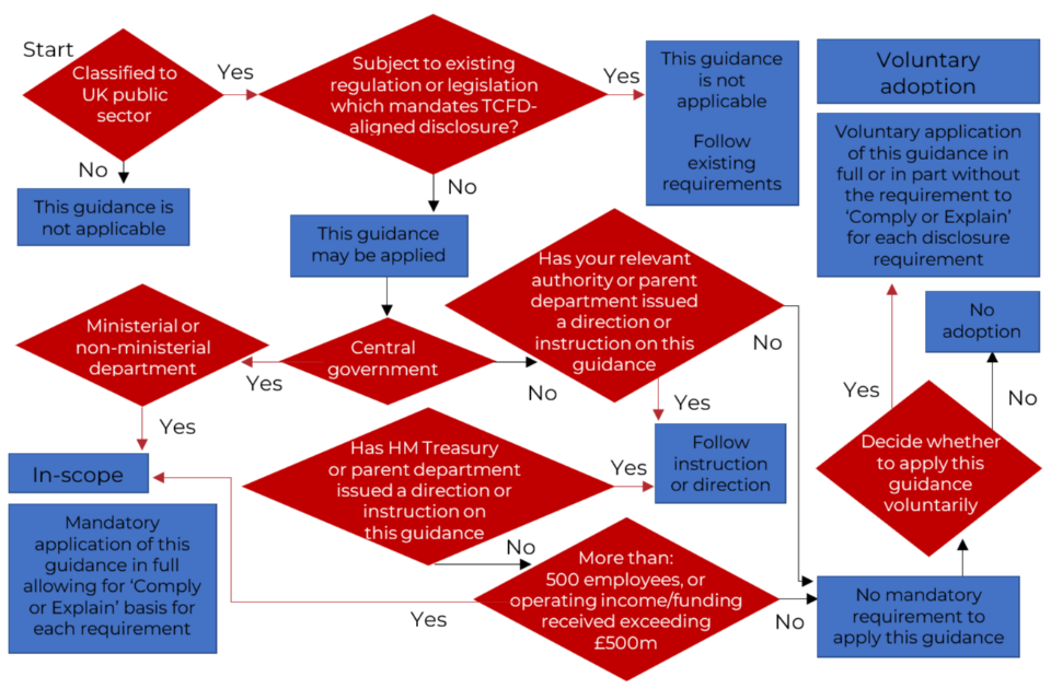 Relevant authorities may direct reporting entities in their jurisdiction to follow this guidance or choose to adapt this guidance to meet their needs (e.g., Department for Health and Social Care (DHSC) sets out their TCFD-aligned disclosure requirements in the Group Accounting Manual (DHSC GAM).