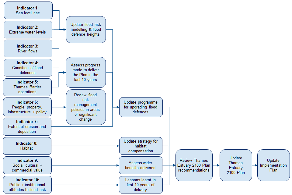 Figure 2: How we will use the key findings from each indicator to support updating the recommendations in the Thames Estuary 2100 Plan.