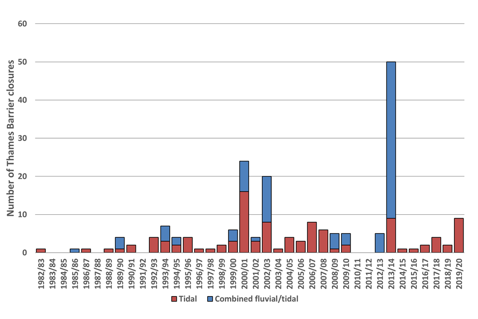We will assess any changes in numbers of Thames Barrier closures as sea level rise accelerates.