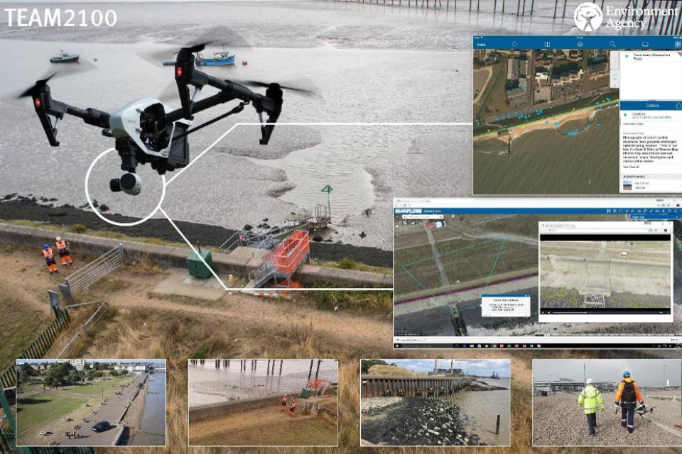 TEAM2100 built ‘Estuary Eye’, which is an award-winning intelligent web-based GIS. Estuary Eye brought together the Environment Agency’s existing data from both traditional surveys and more novel techniques, such as drone videos and satellite data. This is shown in image 3.