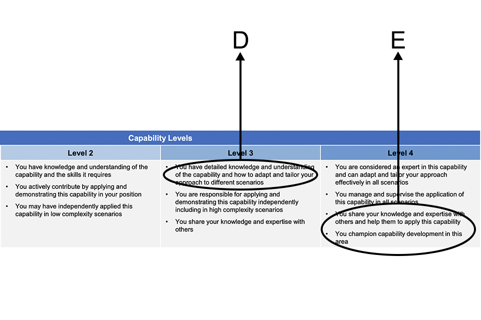 These capabilities and levels are recommended rather than mandatory. Please contact departments for a complete and accurate view of the capabilities and level required for specific roles.