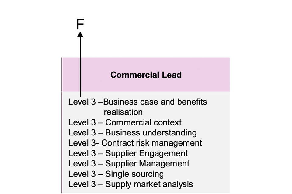 This matrix outlines the necessary experience required to enter government commercial roles at each professional level as well as some example entry routes from both government and the private sector. It is important to note that the entry points listed are not exhaustive and vary across different departments.