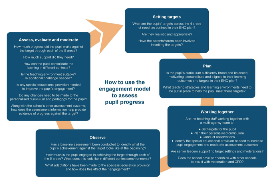 The engagement model should be used in conjunction with a school’s existing planning, assessment and recording systems to provide a flexible, holistic assessment of pupils not engaged in subject-specific study. It also helps schools ensure that they have high-quality teaching, pedagogy and appropriate special educational needs provision in place for their pupils.
