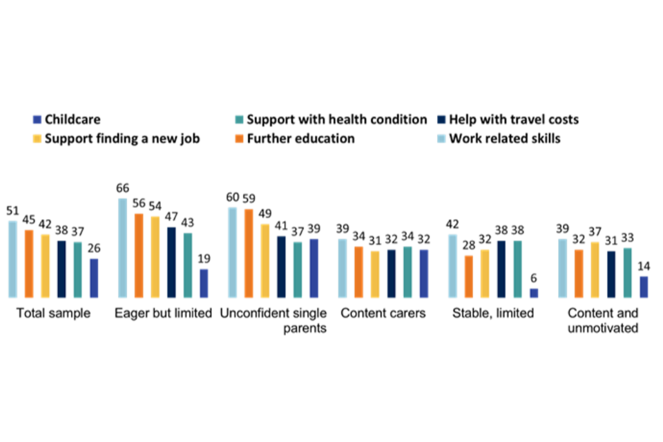 The quantitative data was used to conduct a segmentation analysis – a statistical technique to group respondents who are similar to one another into discrete segments. This will support DWP to develop tailored services to effectively meet the needs of different groups.