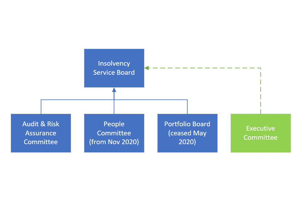 We are governed by the Insolvency Service Board, comprised of executive and non-executive members. The board is responsible for the long-term success of the agency, which includes setting strategic aims and objectives, making sure that leadership and resources are in place, challenging and supporting management performance and reporting to BEIS.