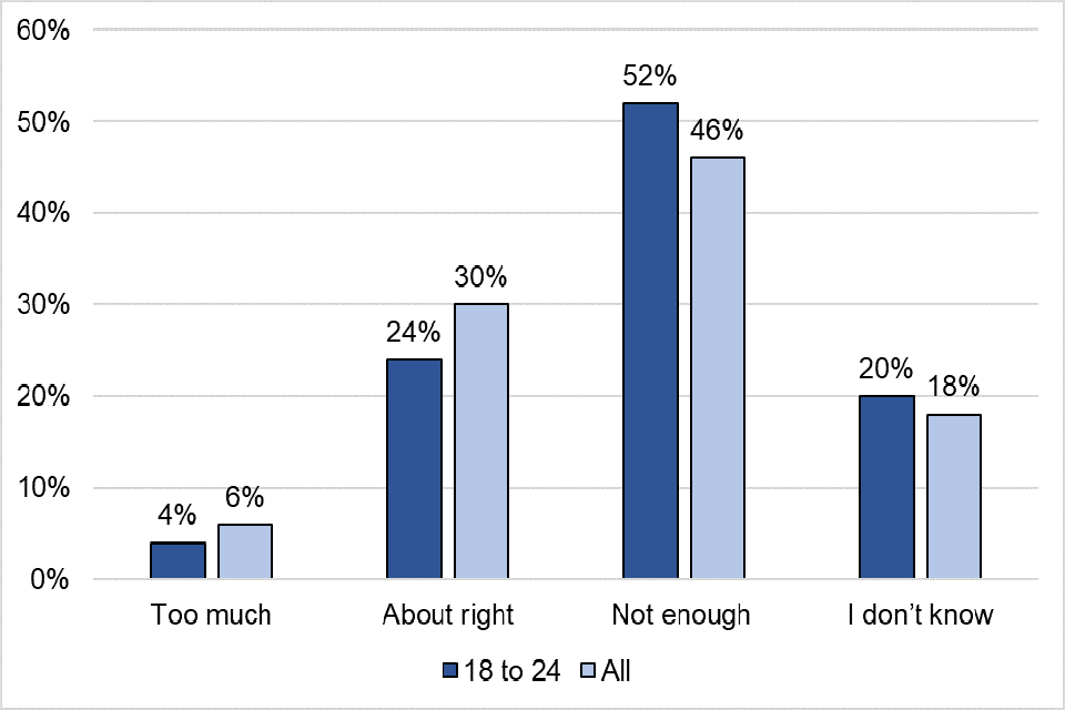 - not enough: 52% of 18 to 24 year olds and 46% of everyone