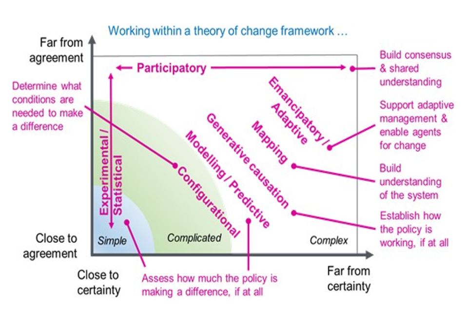 - Complexity can make causality hard to prove (i.e. whether the policy led to a particular outcome) because of the difficulties it creates for standardising an intervention or isolating a control group.