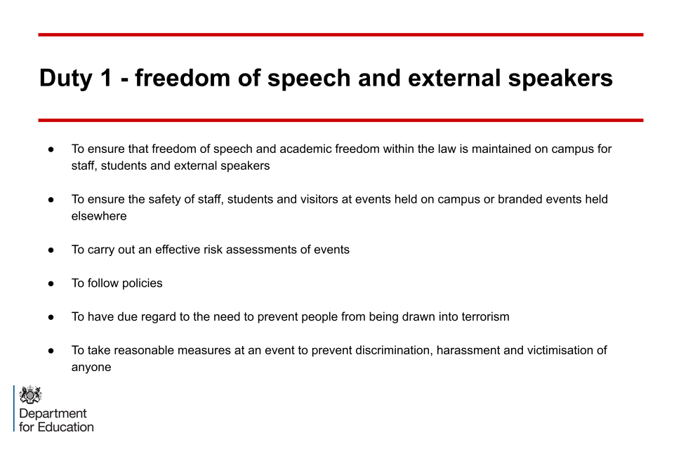 Duty 1 - freedom of speech and external speakers
