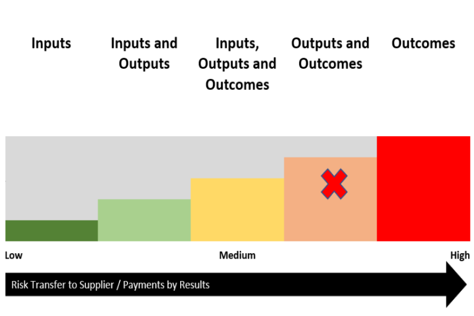 - High risk transfer to supplier: payment by results transfers a significant level of risk to suppliers, this may result in high risk premiums. Taking a blended approach by paying a fixed percentage of the contract value to the supplier irrespective of outcome achievements can reduce the risk transferred.