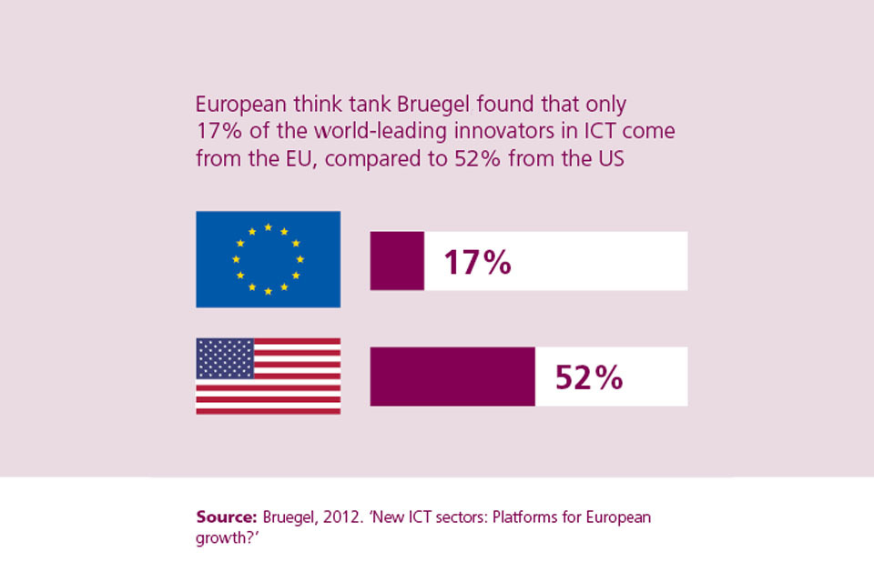 Only 17% of the world-leading ICT innovators come from the EU, compared to 52% in the US
