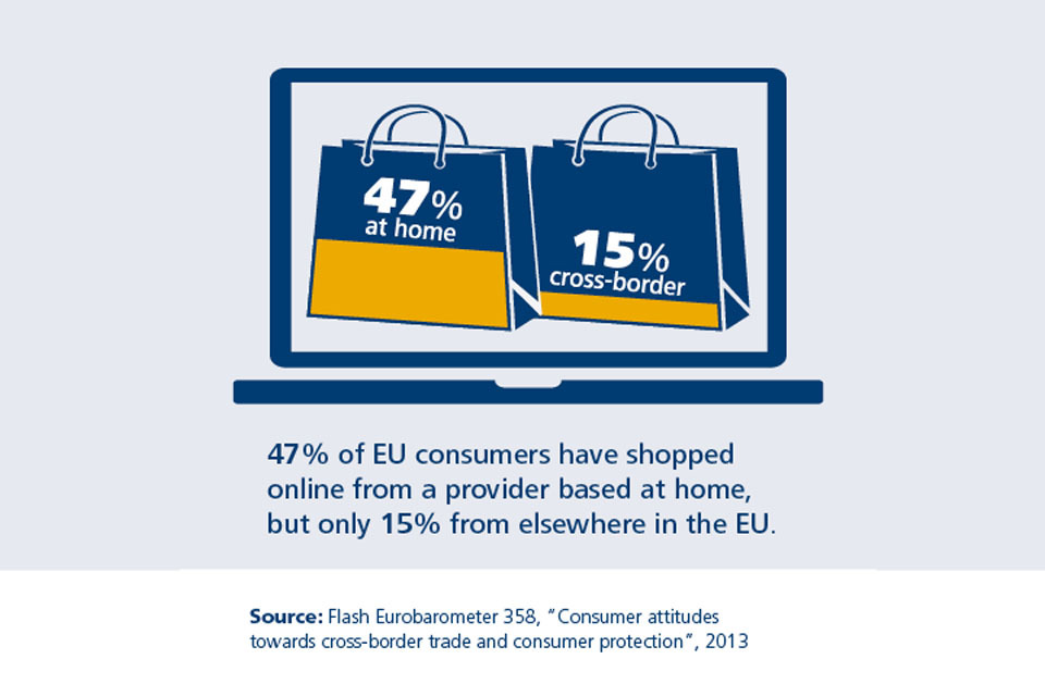 47% of consumers have shopped online from a provider based at home but only 15% from elsewhere in the EU