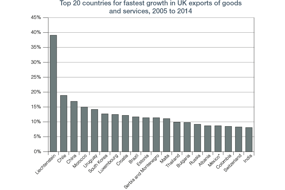‘EY UK Attractiveness Survey 2016’, EY UK, 2016. *For Mexico, exports in 2014 were incorrectly allocated to other Central American countries. Hence used 2013 data. Other categories – covering multiple countries – excluded from chart; ‘ONS Pink Book 2016’, ONS, July 2016. ↩