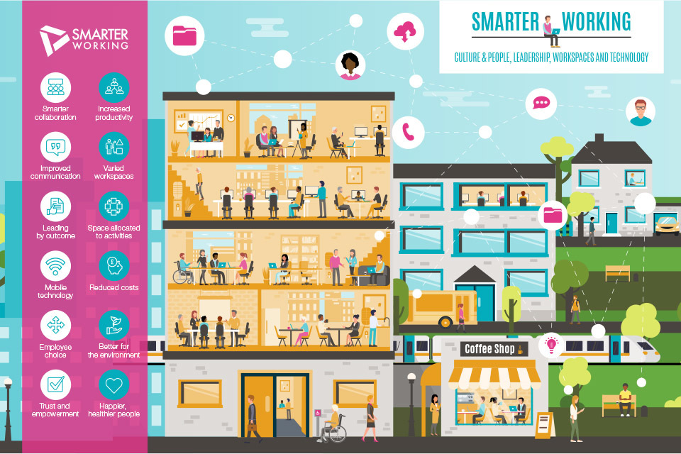 Smarter working empowers us all to make the right decisions about where, when and how we work; optimising the use of workplaces and technology, and realising savings for the taxpayer. It improves productivity through a focus on outputs and enables a better work life balance for all.