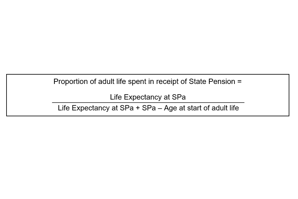The proportion of adult life spent in receipt of State Pension based on life expectancy at SPa can be expressed as follows: