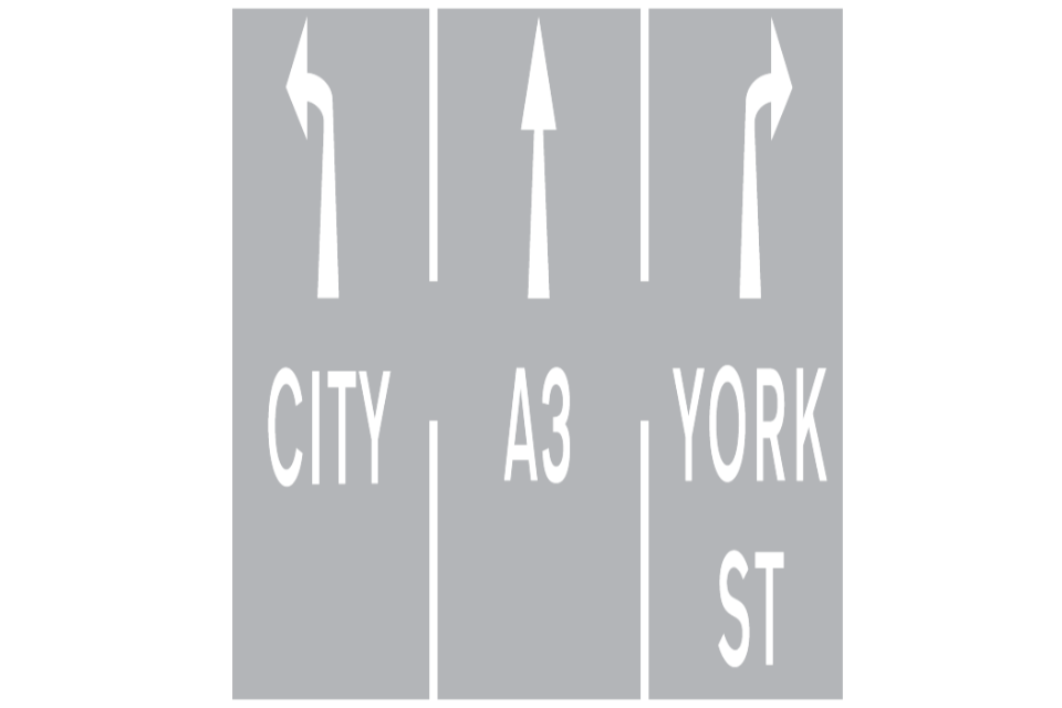 There are 3 lanes ahead of you. The left lane has an arrow pointing left to the city. The centre lane has an arrow pointing straight ahead for the A3. The right lane has an arrow pointing right to York Street.