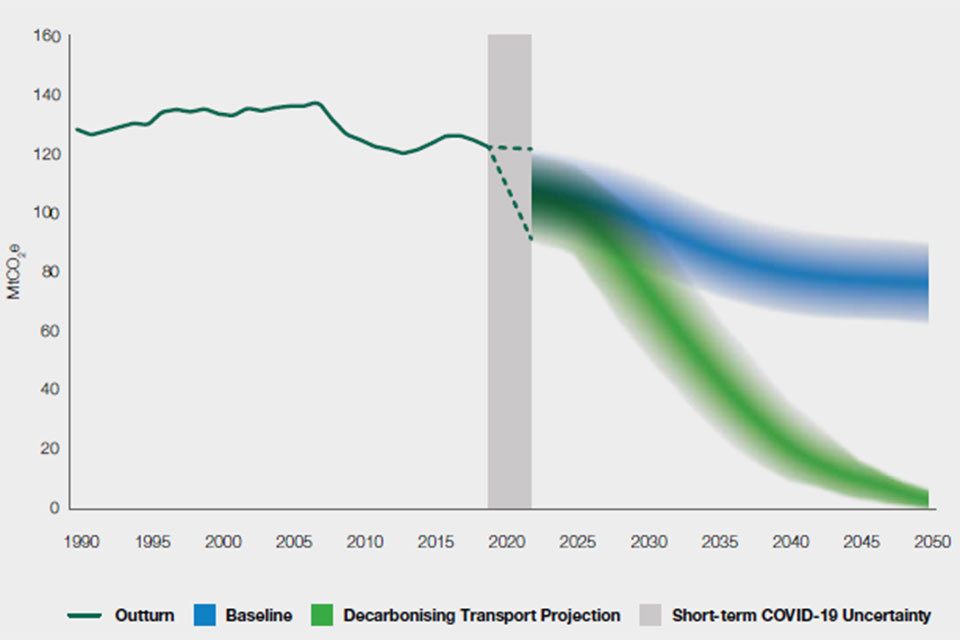 Decarbonising transport published the following greenhouse gas (GHG) projection for domestic emissions.
