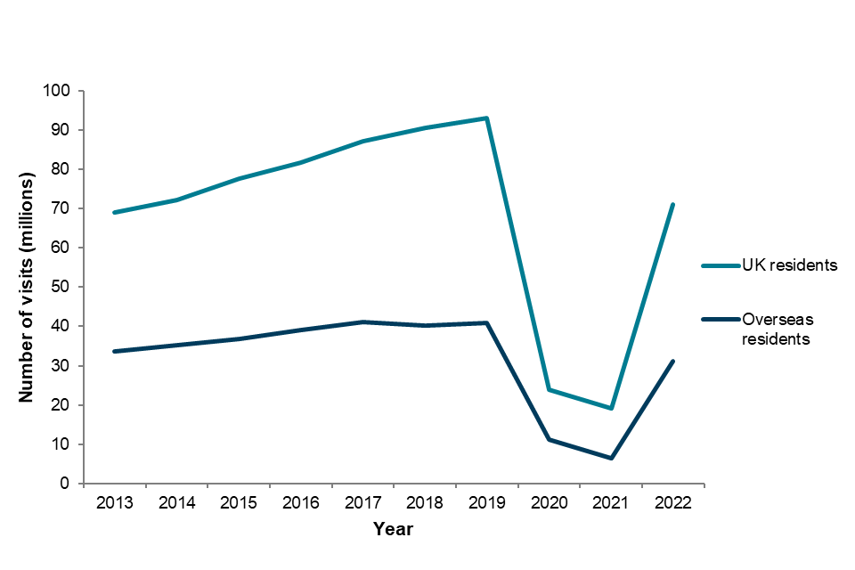 Figure 1. Visits to and from the UK from 2013 to 2022