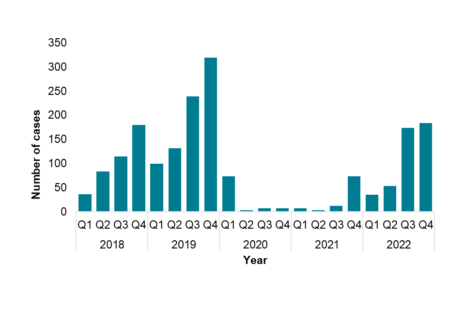 Figure 4. Cases of cholera by quarter, Q1 2018 to Q4 2022