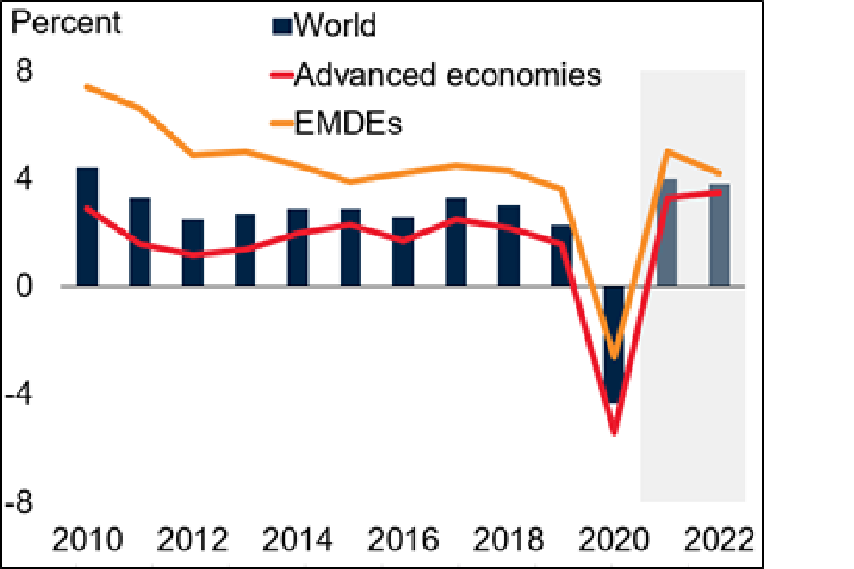 The global economy is estimated to have contracted 4.3% in 2020. China’s increase in output was an exception and disruptions from the coronavirus (COVID-19) pandemic in the majority of other Emerging Markets and Developing Economies (EMDEs) were more severe than previously envisioned, resulting in deeper recessions and slower recoveries