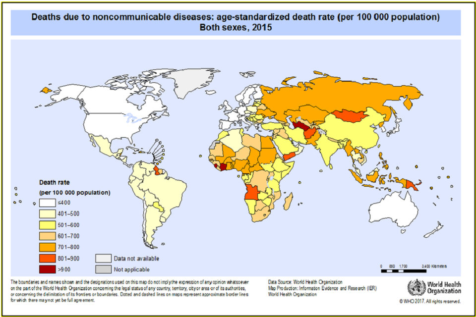 Noncommunicable diseases (NCDs) kill 41 million people each year, equivalent to 71% of all deaths globally. Each year, more than 15 million people die from a NCD between the ages of 30 and 69 years; 85% of these ‘premature’ deaths occur in low and middle-income countries. As populations age, total noncommunicable diseases deaths are projected to rise to 52 million in 2030.
