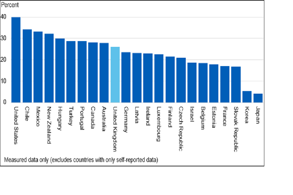 Obesity prevalence in the UK compared with other Organisation for Economic Co-operation and Development (OECD) countries