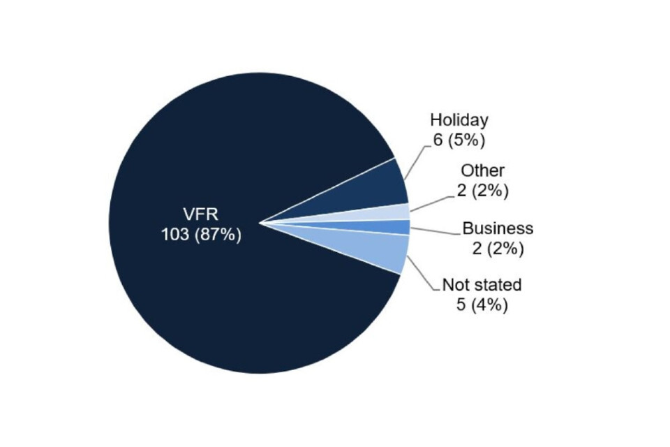 Figure 4. Reason for travel for laboratory confirmed cases of enteric fever that travelled abroad from England, Wales and Northern Ireland: 2021 (total 118 cases)