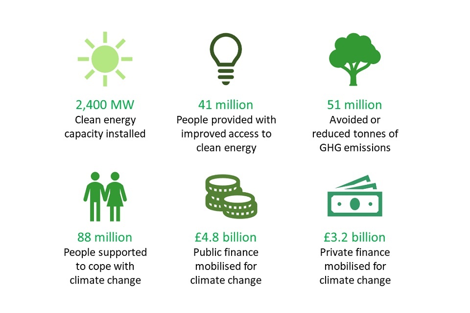 - mobilised £4.8 billion public and £3.2 billion private finance for climate change purposes in developing countries