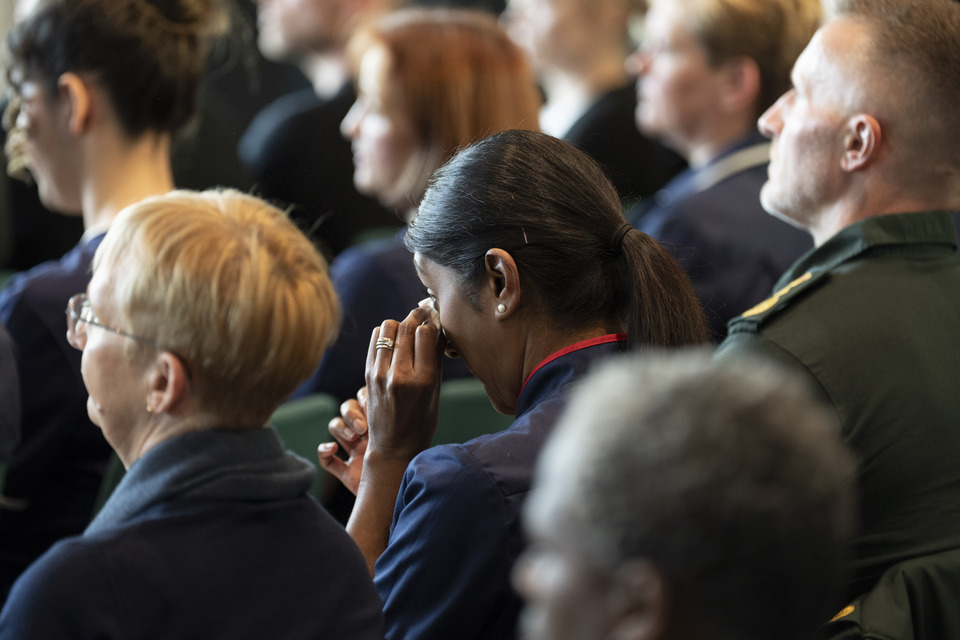 Mae staff gofal iechyd, cleifion a theuluoedd yn mynychu digwyddiad NHS Charities Together ar y Diwrnod Cenedlaethol Myfyrio. Credyd delwedd: NHS Charities Together