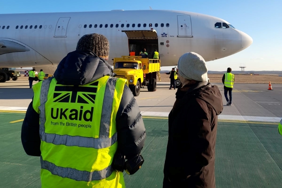 A UK aid flight carrying blankets and hygiene kits for Ukrainian refugees arrives in Moldova. Credit: Igor Zaharov/FCDO.
