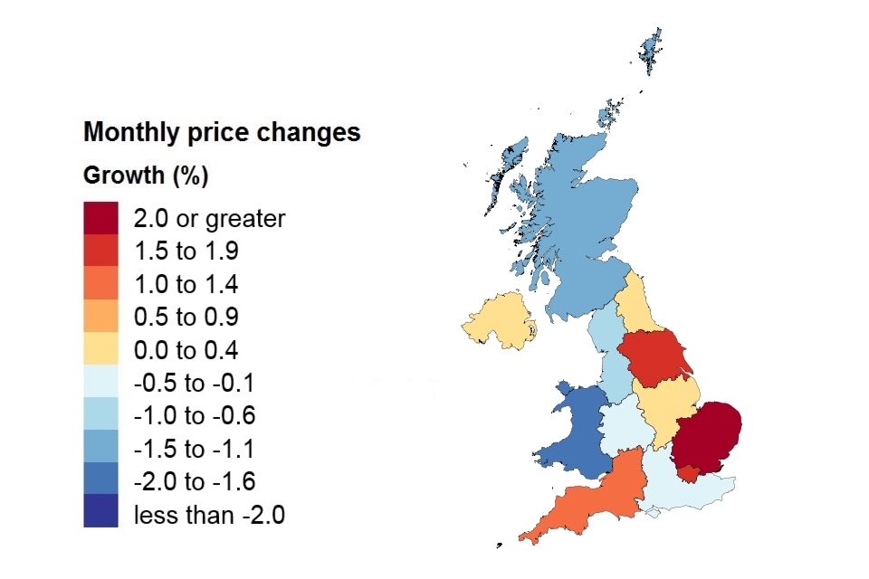 At the country level, the largest annual price growth was recorded in Northern Ireland, increasing by 2.5% over the year to Quarter 4 (October to December) 2019.