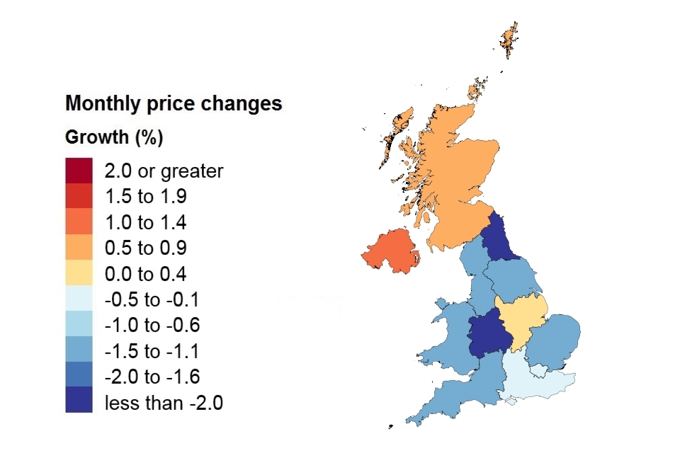 the monthly price change for a property in the UK was