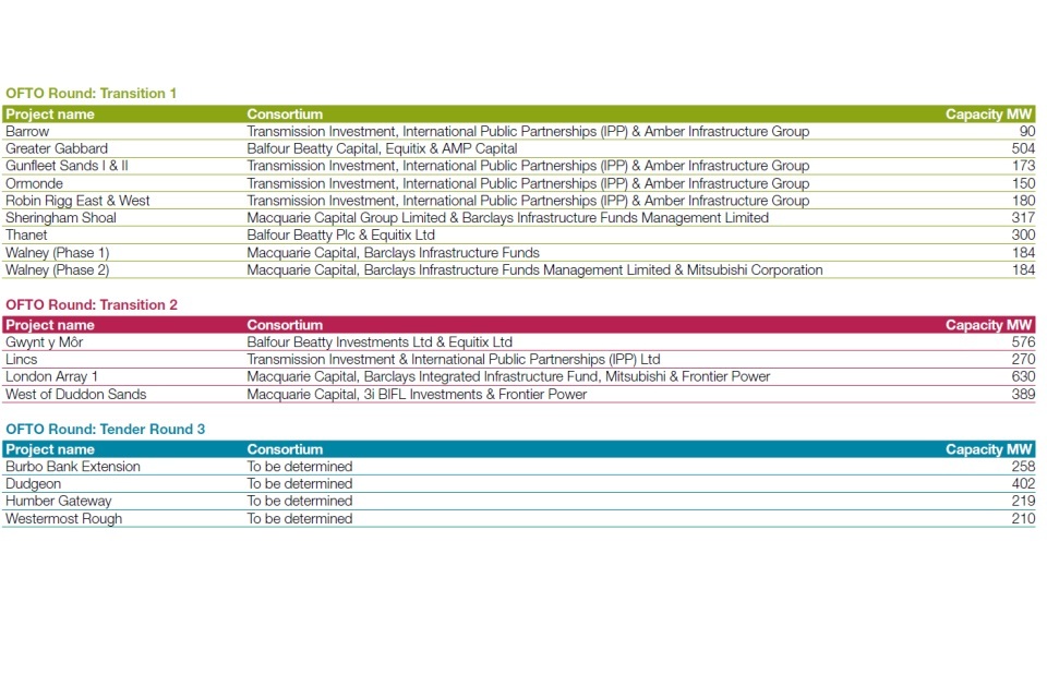 - the strong future offshore wind pipeline will deliver billions of pounds of further investment in the OFTO market.