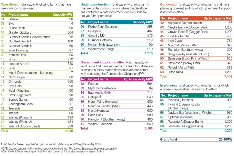 UK offshore wind project pipeline – May 2015