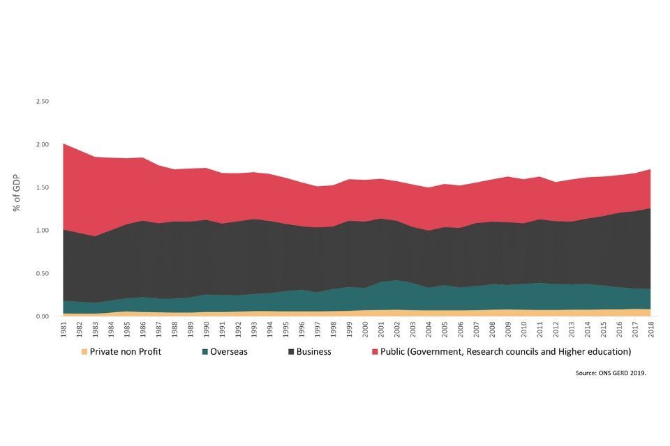 Office for National Statistics, Business Enterprise Research and Development 2018 - https://www.ons.gov.uk/economy/governmentpublicsectorandtaxes/researchanddevelopmentexpenditure/bulletins/businessenterpriseresearchanddevelopment/2018 ↩