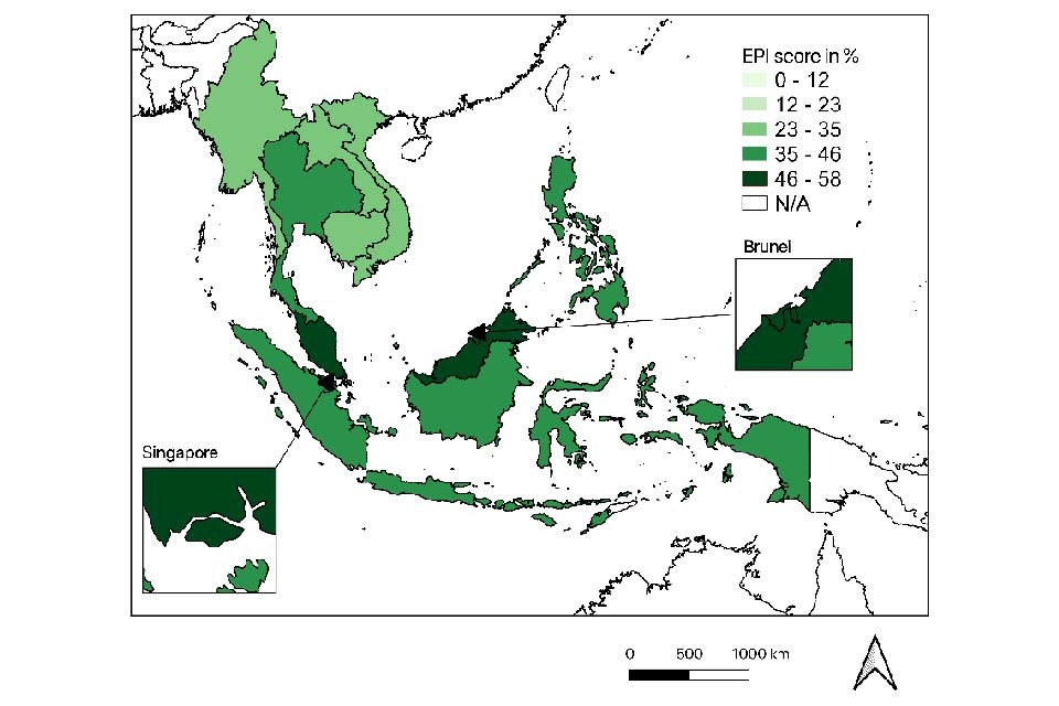Figure 4: Environmental Performance Index in ASEAN countries (Data Source: Wendling et al., 2020; hosted on epi.yale.edu)