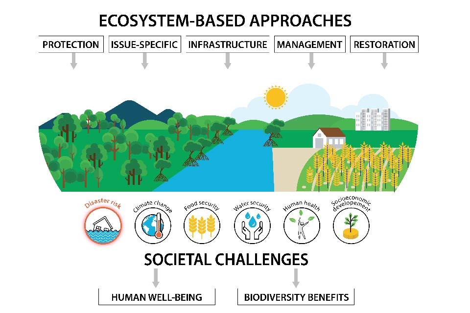 Figure 7: Nature-based Solutions can help address one or more societal challenges, such as disaster risk, while delivering biodiversity benefits (Adapted from: IUCN, 2020)