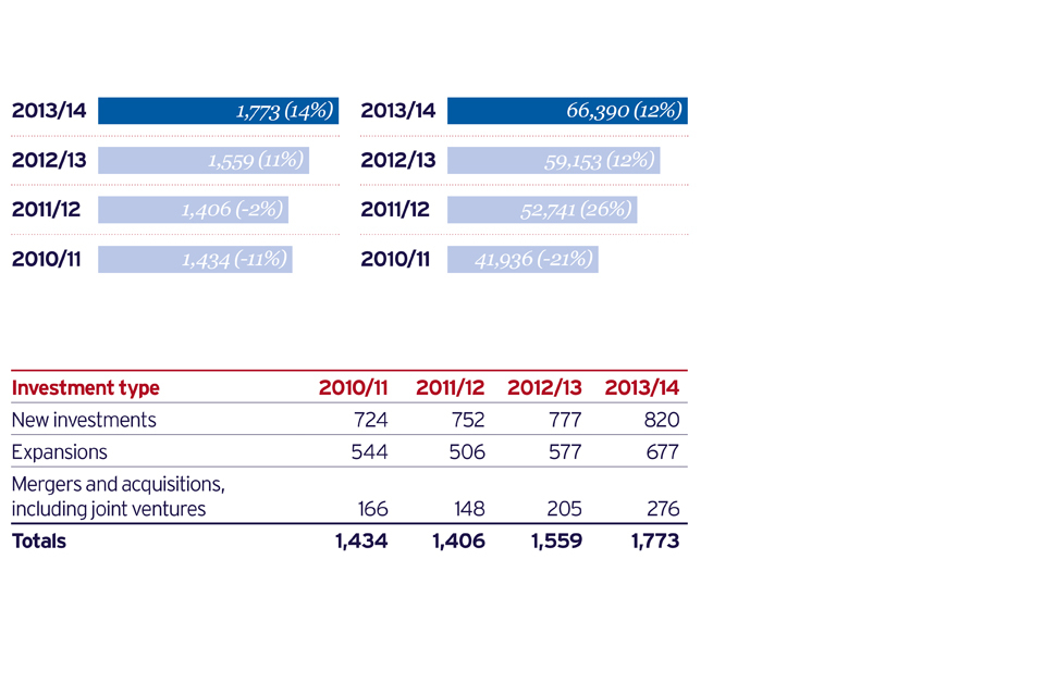 Investment projects from over sixty countries were recorded in 2013/14. There were strong investment figures from all global regions.