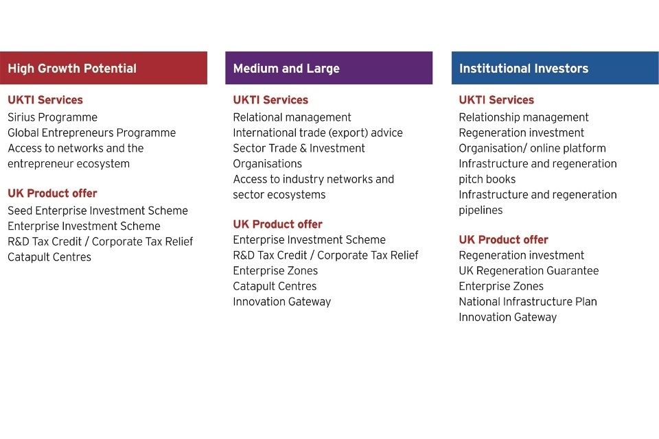 UKTI develops bespoke programmes in support of each segment of the inward investor value chain.