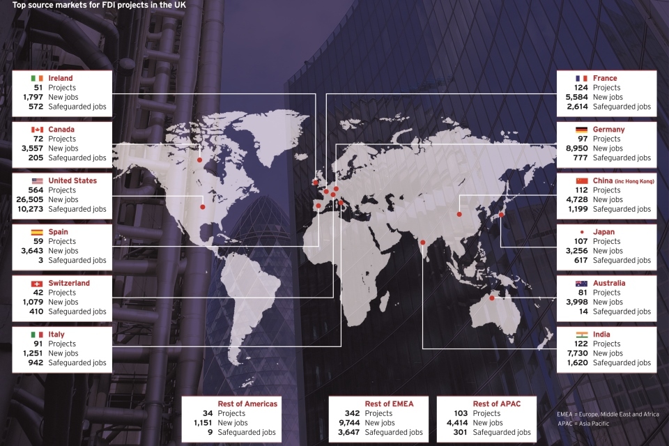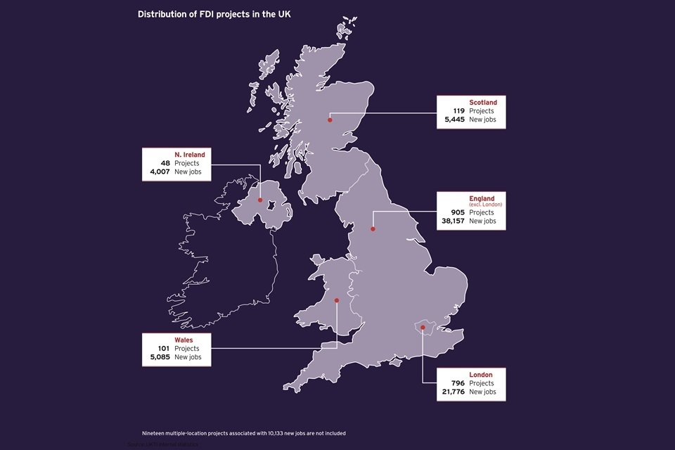 Foreign investments bring with them a significant number of new and safeguarded jobs across the UK and in all sectors of the economy. It is estimated that almost 85,000 new jobs [footnote 2] were created by inward investment projects, 27% higher than in the previous year and the highest since records began in early 1980s.