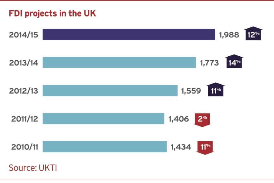 It gives me great pleasure to report that 2014/15 was another record year for inward investment into the UK. We recorded the highest number of Foreign Direct Investment projects ever, and those projects created the highest number of new jobs on record.