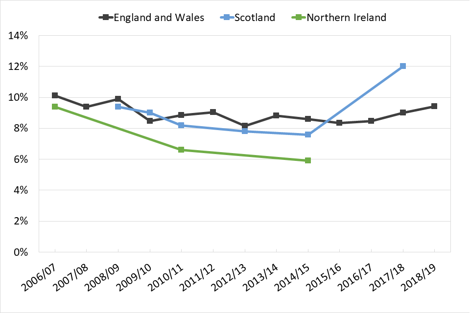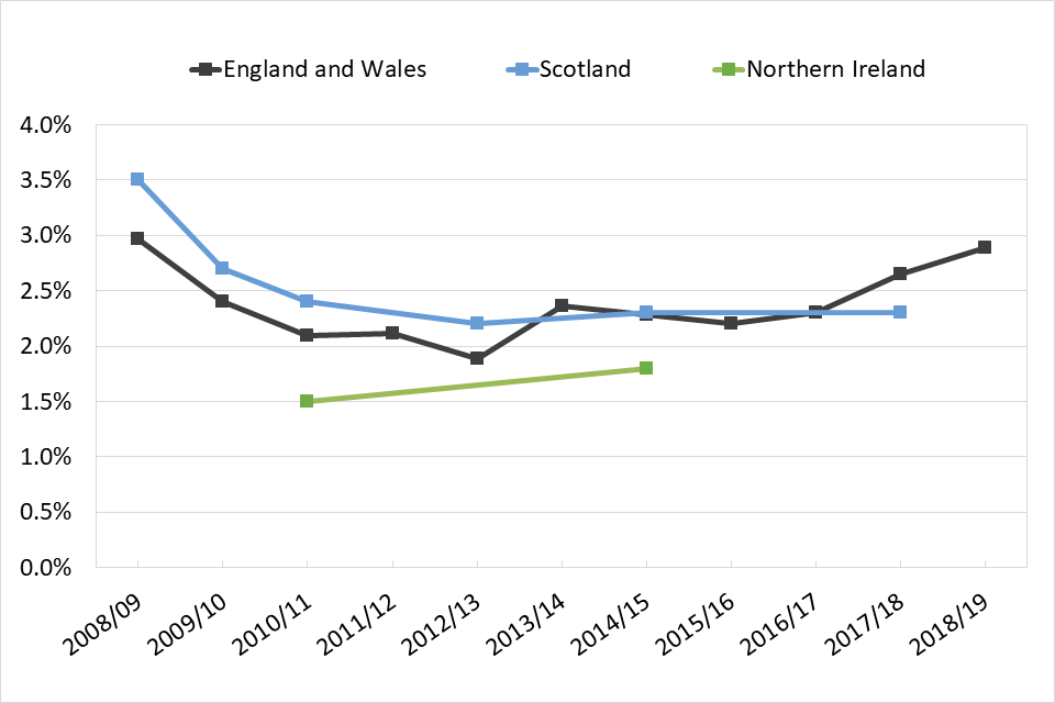 To compare the countries of the UK, we have presented Scottish data for 16 to 64 year olds as supplied to the Focal Point by the Scottish government. Comparisons between the countries are made using these age groups, unless otherwise stated.
