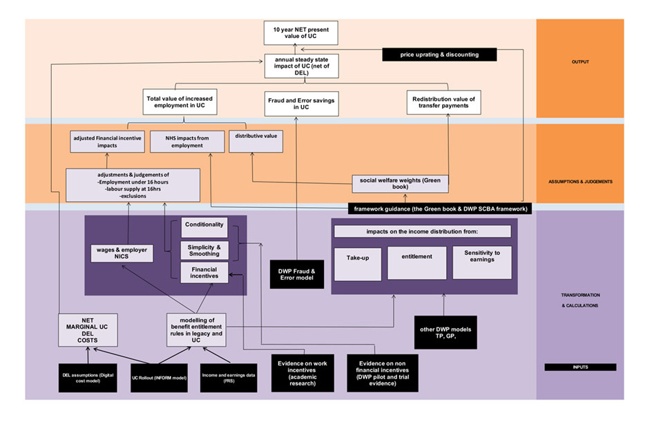 1.25. This section will explain how this works by describing the impact of delivering Universal Credit compared to the legacy system on the income distribution, particularly in how it transfers money to people in different income brackets, and generates social economic value[footnote 8].