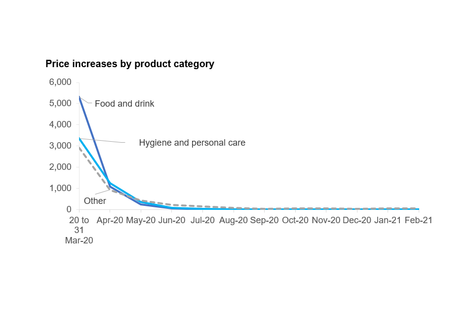 In our last report in July 2020, we analysed transaction data collected by Nielsen and showed how prices for essential items were broadly returning towards normal levels by mid-May 2020. Based on our own subsequent data and intelligence, we have not identified any remaining, sustained instances of unjustifiable price increases. We remain alert to the possible re-emergence of exceptional circumstances that would allow egregious pricing practices to be sustained again, and remain ready to intervene should that happen.
