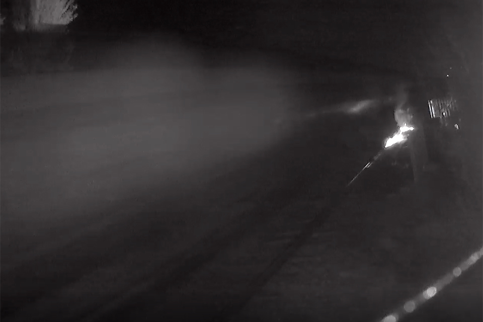 CCTV image showing the third wagon passing Pen-y-Bedd level crossing
