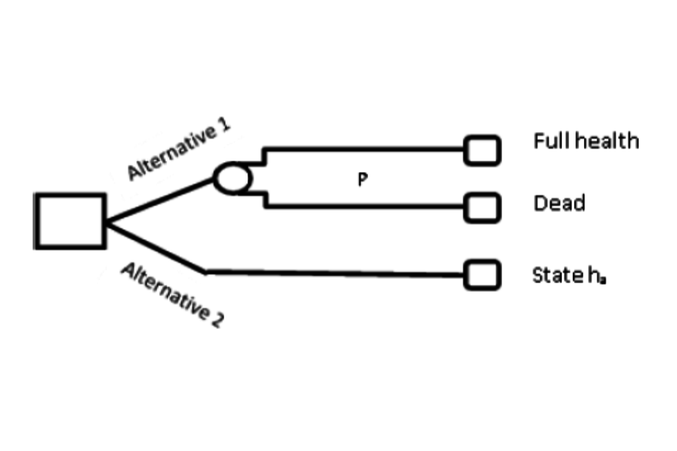 There are several techniques that can be used to determine the utility of a given health state. The 3 most common, involving direct elicitation of preferences from individuals, are the standard gamble, the time trade-off and the visual analogue scale (Torrance, 1986). An overview of these approaches is presented here, summarised from Torrance (1986), Drummond et al. (2015) and Brazier et al. (2017) (see references for a more in-depth discussion).