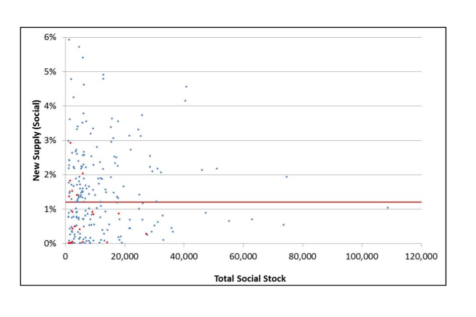 | 2. New supply delivered % | Consolidated and social housing | United acquired or developed in year as a proportion of existing stock |