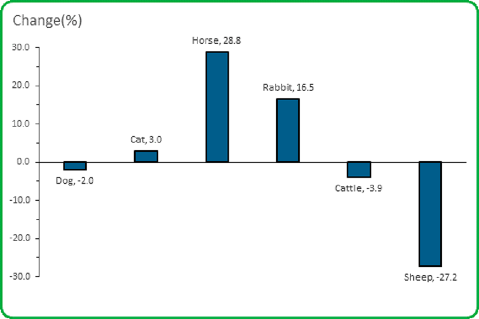 - The number of reports involving sheep decreased by 27.2%