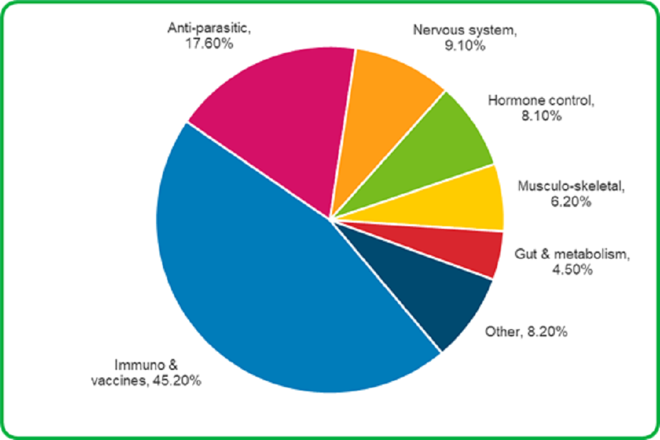 - 9.1% were for the nervous system, mostly anaesthetics
