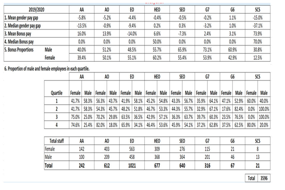 The Gender Pay Gap data supplied is correct for all staff in post and on the VOA payroll on 31 March 2020. The results are below at Annex A.